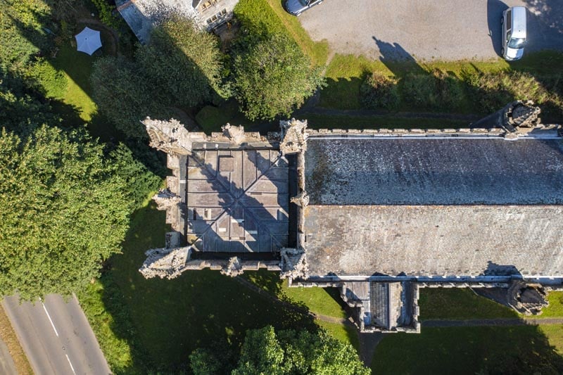 Using drone imagery to identify damaged tiles and guttering without scaffolding.